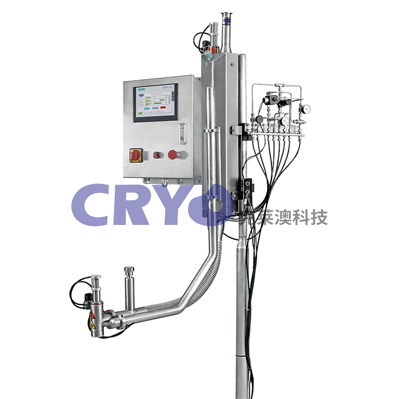 使用三個感應(yīng)器檢測流水線的速度、時序以及瓶子顯現(xiàn),適用低速和高速生產(chǎn)線。提高系統(tǒng)和流水線速度同步的精準(zhǔn)度,精確的把液氮(LN2)注入每一個容器內(nèi)。注入的液氮隨即氣化形成內(nèi)壓,提高容器的堆疊負(fù)荷力,同時把容器內(nèi)的氧氣推出,惰化產(chǎn)品頂隙的空間。